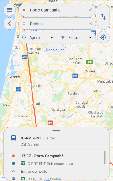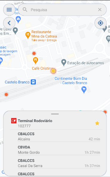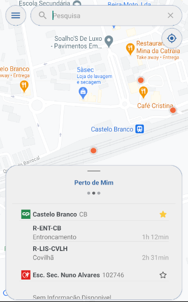 Hal ini memungkinkan pengguna untuk memvisualisasikan pemberhentian terdekat dengannya serta perjalanan berikutnya dan tujuan masing-masing. Permintaan ini dapat dilakukan melalui akses ke lokasi pengguna atau melalui pencarian tekstual dari perhentian atau tempat tujuan.