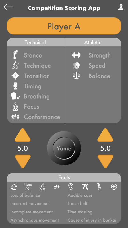 Aplikasi penilaian kompetisi: Melacak waktu pertarungan dan poin yang dicetak, baik di kumite maupun Kata.