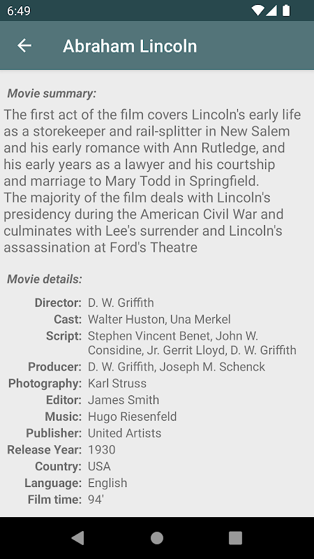 • Baca tentang detail film, aktor terkenal, produser, penulis naskah, dll.