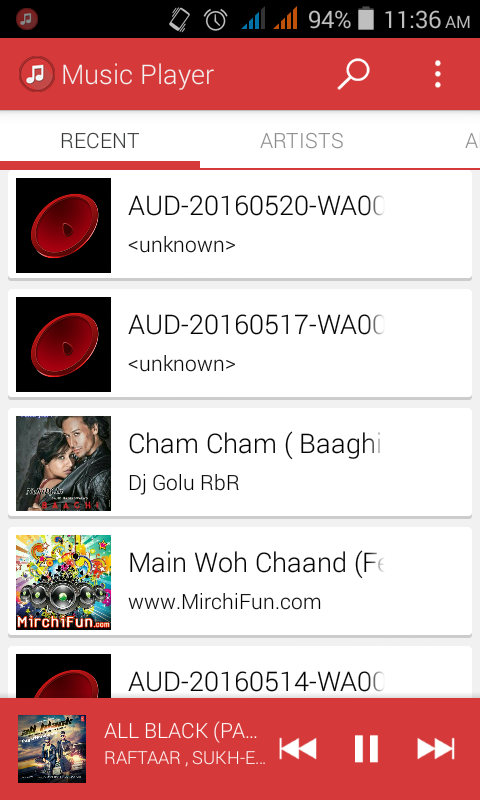 Browse and play your music categorise by Playlist, Songs, Artists, Albums, Genres.