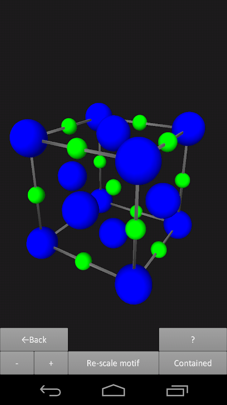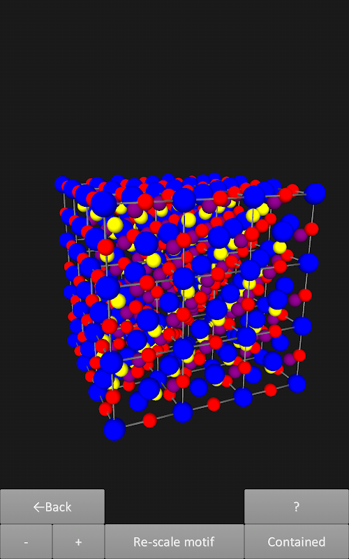Aplikasi ini visualisasi 14 Bravais Lattices 3D, menunjukkan posisi atom mereka dan situs kisi. Enam motif yang berbeda yang tersedia. Visualisasi 3D bisa diputar dan diperbesar sementara yang mengandung satu atau beberapa unit sel.