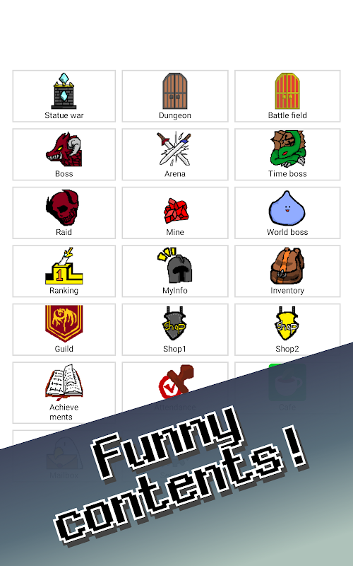 Bangun pahlawan yang lebih kuat dengan peralatan yang kamu dapatkan dalam pertempuran yang sulit dengan bosmu.