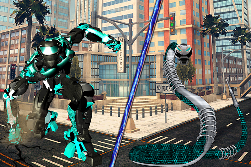 Dalam multi Robot Snake vs Robotic Gorilla Battle Anda bisa bertarung dengan robot jahat dan berubah menjadi ular robot yang mematikan untuk mengalahkan robot pesaing Anda. Tunjukkan serangan Wildcraft Anda dan kendalikan robot ular untuk menyelamatkan kota dari kekuatan jahat. Anda bisa mencari robot musuh dan menggunakan kekuatan menyerang Anda seperti melempar bola api untuk mengalahkan pesaing Anda di kota. Misi mendebarkan siap untuk meledakkan game di dunia game.