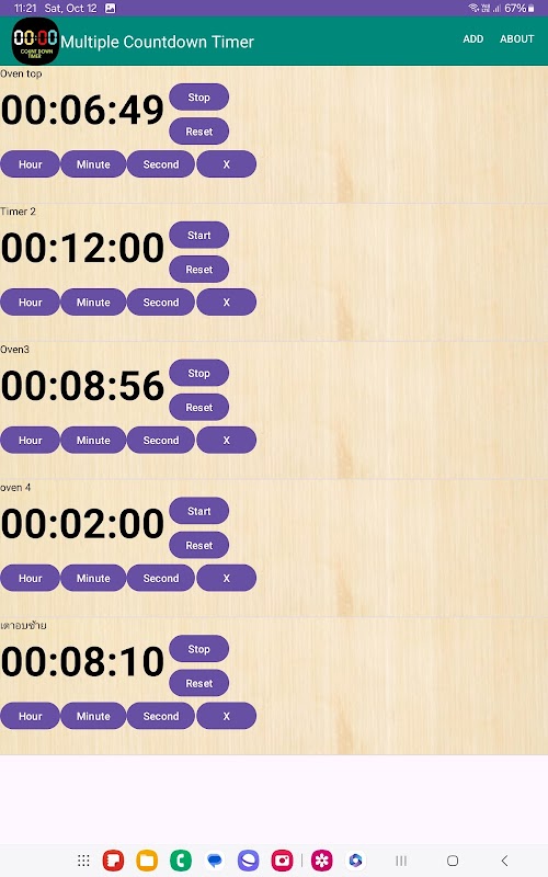 Pengatur waktu memanggang, pengatur waktu oven, dapat disetel beberapa kali sekaligus, digunakan saat Anda memanggang di beberapa oven sekaligus atau memasak beberapa hidangan dan memerlukan beberapa penghitung waktu mundur, aplikasi ini dapat menyetel beberapa penghitung waktu mundur sekaligus.