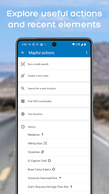 • Membuat dan menyimpan rute multi-stop dan pencarian untuk penggunaan di masa mendatang