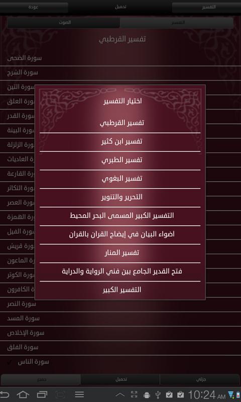 4.Downloading Quran Audios (without the need of internet connection after download).
