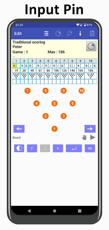 * Catat skor bowling dan lokasi pin Anda dengan mudah dalam basis data yang mudah digunakan
