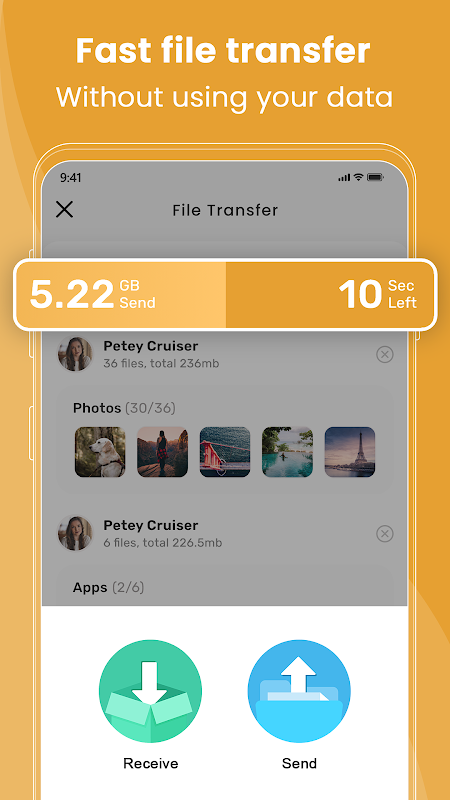 Automatically sort files into categories like Images, Videos, Documents, Audio, and Apps for easy organization and access. Mark important files as Favorites for quick retrieval.
