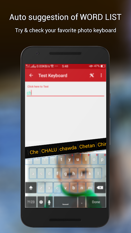 menyesuaikan cara Anda mengetik dan mengirim pesan ke teman Anda !! Pilih foto dari galeri atau klik foto baru dan menetapkan mereka sebagai latar belakang keyboard Anda.