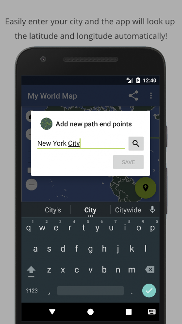 Enter your home city and other cities you have traveled to and view a map rendered with arcs that are drawn from your home city to the cities you have visited. More features coming soon! Let us know what you think and we can all make this app better for all!