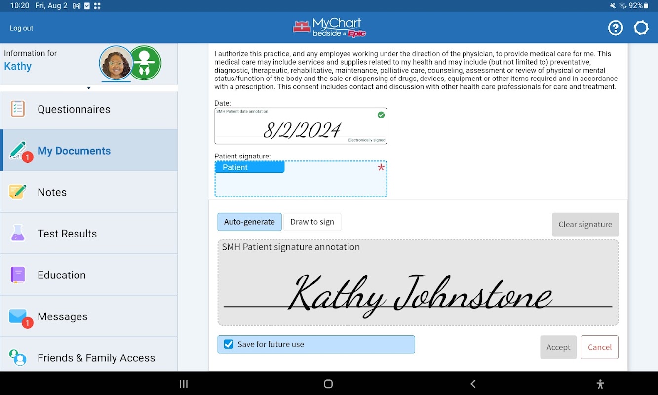 MyChart Bedside adalah portal Anda untuk terlibat dengan perawatan Anda saat dirawat di rumah sakit. Berdayakan diri Anda dan keluarga Anda dengan akses ke tim perawatan, data klinis, dan pendidikan kesehatan.