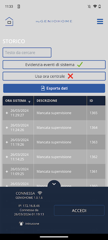 Aplikasi untuk manajemen sistem alarm intrusi GenioHome oleh IESS S.r.l..