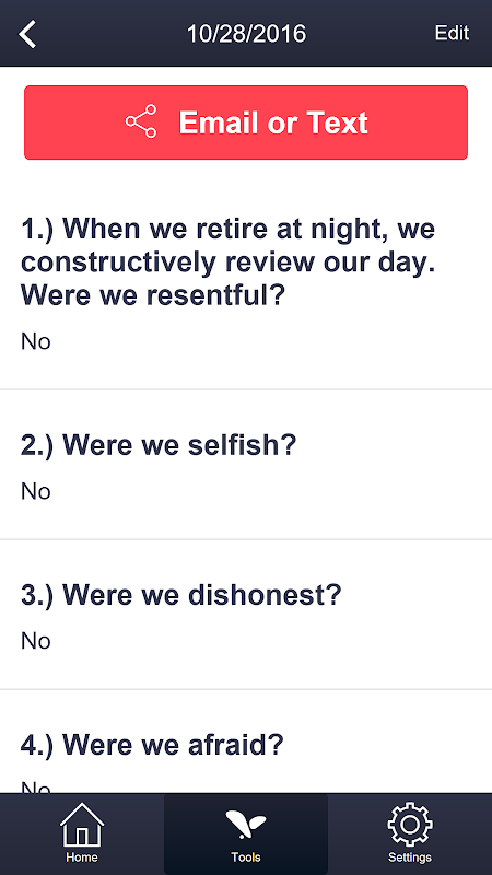 It also has a Spot Check Inventory that allows you to quickly get rid of resentments when on the go and you can later add more detail via your computer because all data is securely synced to the cloud using the same security as banks!