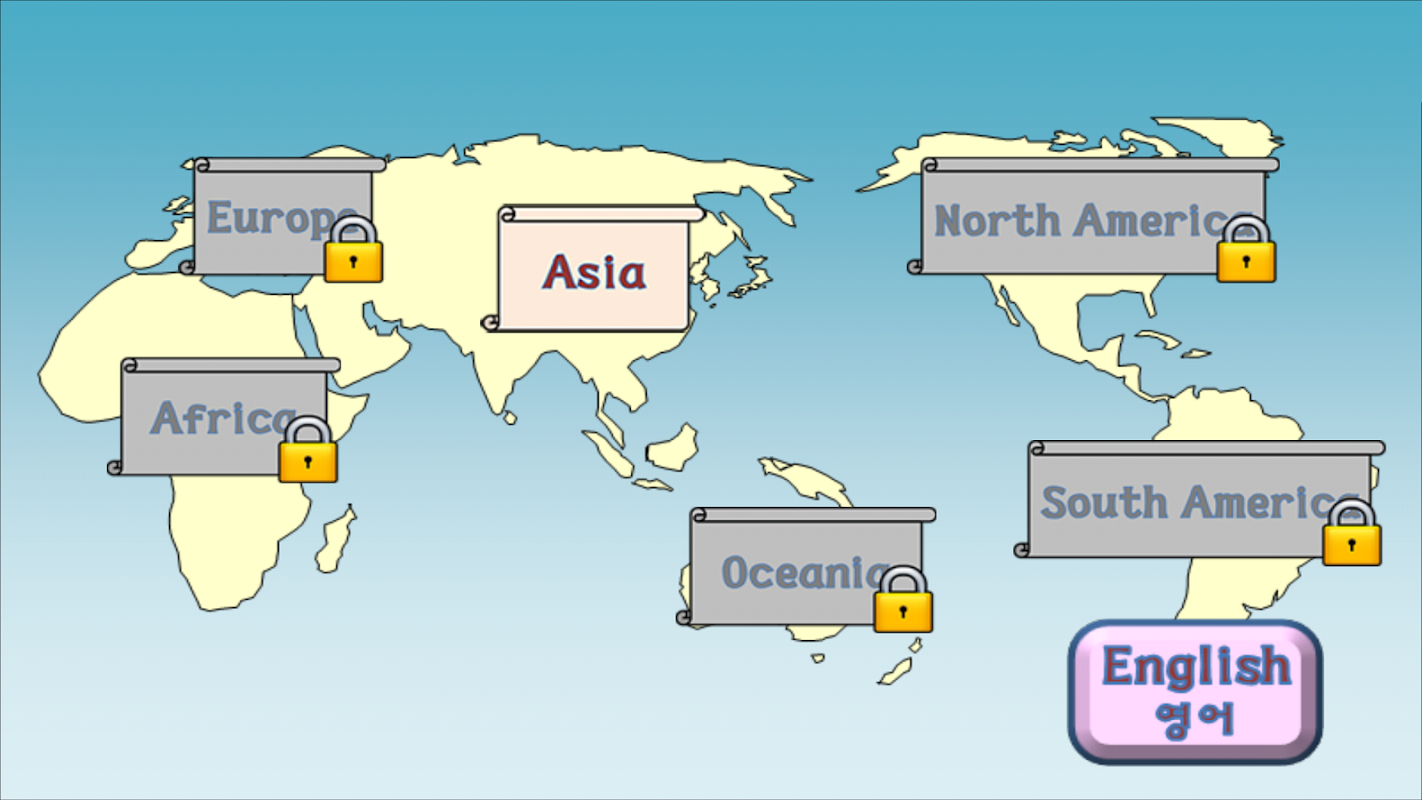 - This game is benenfical for language education as children can learn the name of the capitals, nations, and continents both in English and in Korean.
