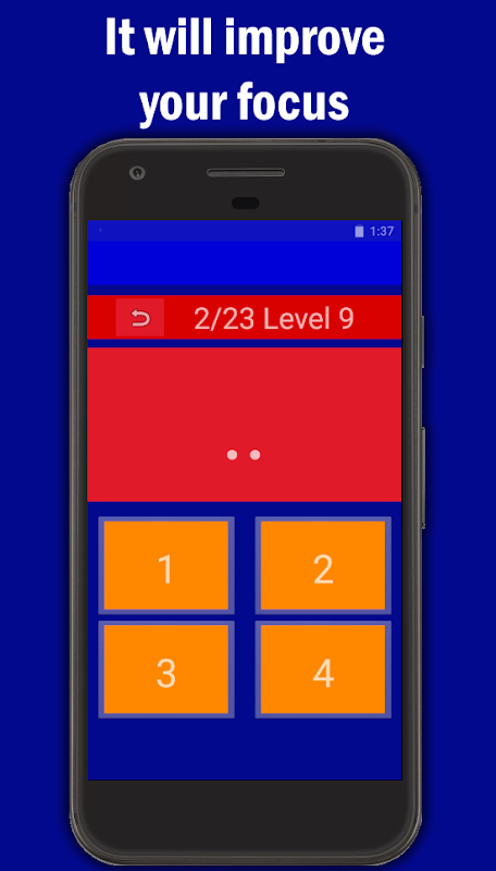 Nback Memory is a game, based on scientific studies, which will help you to improve your focus and memory. The main idea of the game is to follow step by step a pattern of numbers shown on the screen. Those numbers are in the range of 1 to 4.