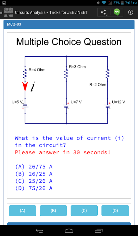 This app details the shortcut trick that can be employed to attempt questions about Circuit Analysis for NEET and JEE.