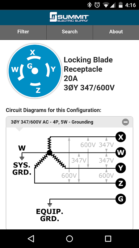 NEMA Panduan Konfigurasi Summit Listrik Supply menempatkan lebih dari 240 konfigurasi NEMA di ujung jari Anda. Aplikasi ini membantu Anda dengan cepat dan mudah mengidentifikasi perangkat Anda sehingga Anda dapat melanjutkan dengan proyek Anda. Pencarian dengan nomor konfigurasi NEMA atau masukkan informasi yang diketahui seperti tegangan, arus listrik atau tiang untuk menyaring untuk pertandingan. Sentuh ikon dan melihat spesifikasi rinci. Gunakan berguna plug / wadah lintas option referensi untuk cepat menemukan konfigurasi yang cocok.