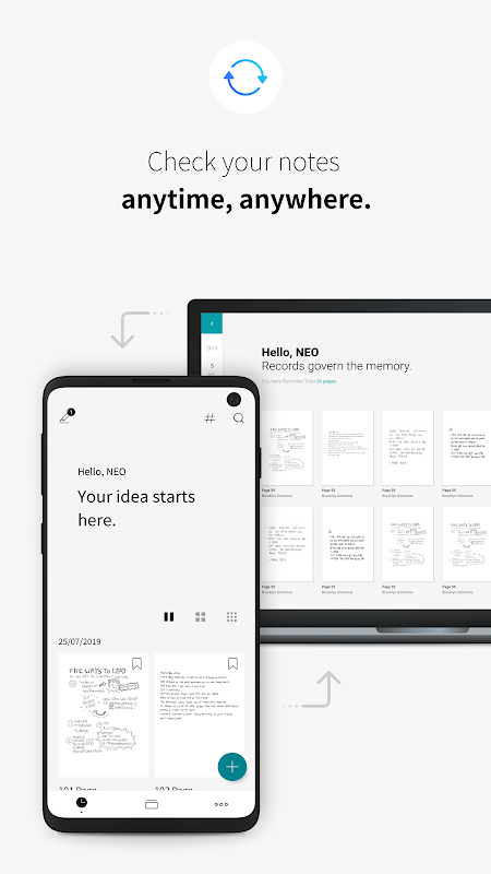 [Rekam / Putar Ulang] Rekam saat membuat catatan dengan Neo smartpen. Jangan pernah melewatkan sepatah kata pun dari kuliah atau seminar lagi. Anda tidak harus melalui semua rekaman Anda. Cukup ketuk tulisan Anda di aplikasi untuk memutar audio yang direkam pada saat itu.