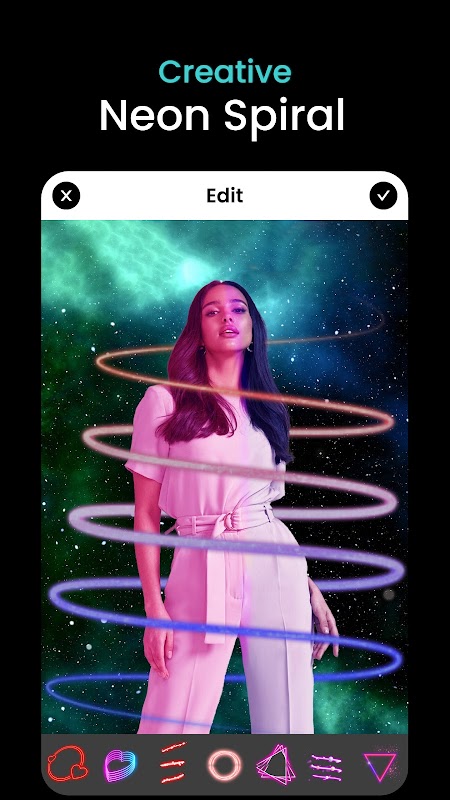 🌈 NEON LINES: Add spiral neon lines around your images.