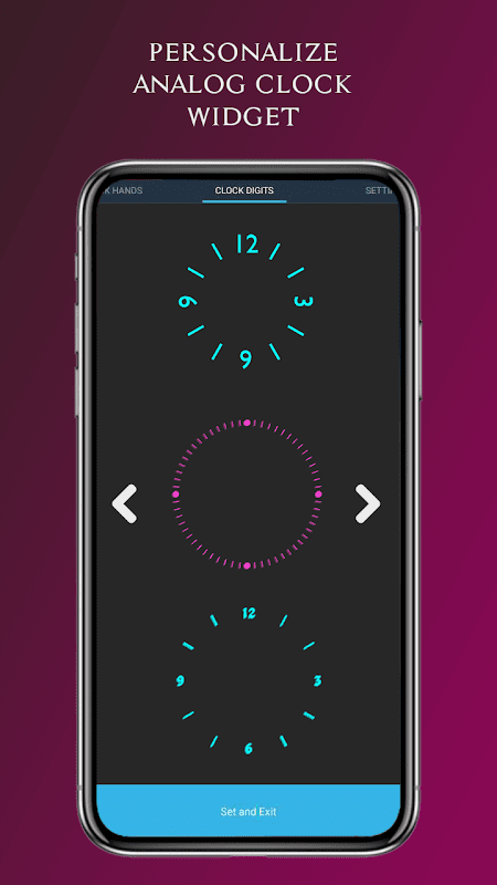 * Pilih desain jam dan jarum detik untuk jam analog berwarna HD.