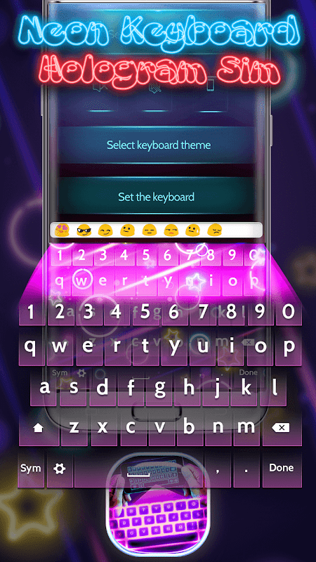 👽 🤡 💙 What an awesome “3D hologram joke”! 💙 🤡 👽 If you are looking for luminous “keyboard apps” to hologram prank your friends, then you should check out our 🤡 Neon Keyboard Hologram Sim 🤡 ! Decorate your phone with glowing backlit “keyboard themes” and have fun with this cool neon keyboard with emojis! This new neon “emoji keyboard” is a free “virtual keyboard” with amazing “holographic wallpaper” for keyboards. Download our virtual “laser keyboard” and change your “keyboard design” with one of the best “3D keyboards” latest and stylish! 💙