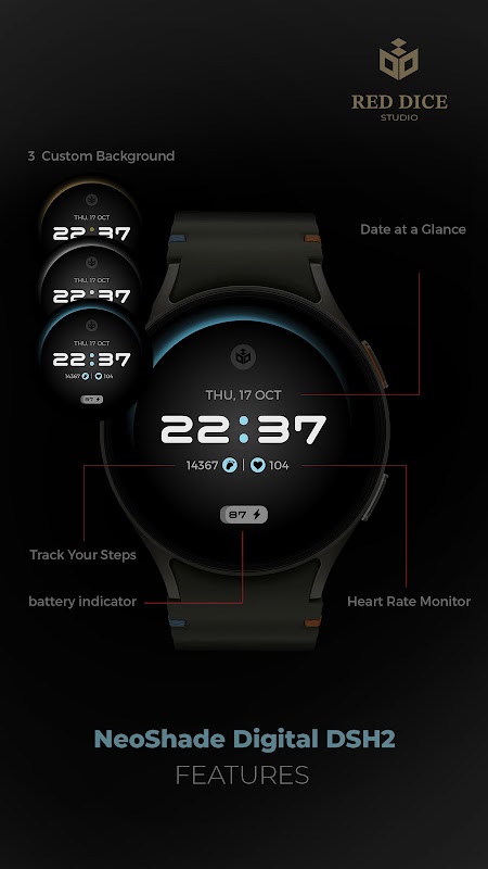 NeoShade Digital DSH2 dirancang untuk mereka yang menghargai minimalis tanpa mengorbankan fitur-fitur penting. Nikmati performa yang mulus dan tingkatkan estetika jam tangan pintar Anda dengan tampilan jam yang modern dan dinamis ini.