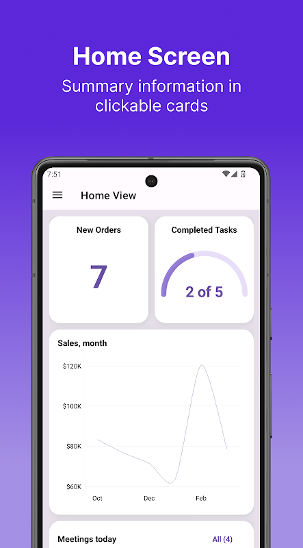 Aplikasi ini menggunakan kontrol UI berikut untuk manajemen tata letak dan presentasi data: DataGrid, Charts, Scheduler, Data Editors, DataForm, CollectionView, TabView, BottomSheet, dan banyak lagi. Pustaka DevExpress Office File API dan platform Pelaporan menerapkan kemampuan pembuatan dokumen dan mengekspor ke PDF dan Excel.