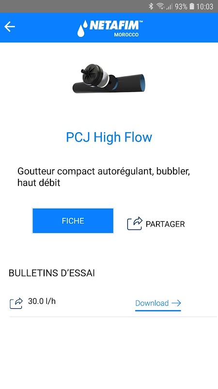 Melalui aplikasi NetCertif, Netafim Maroko mengumpulkan pada satu platform semua lembar data dan uji buletin untuk produk irigasi tetes Netafim. Semua tetesan air dan meteran tersedia untuk konsultasi, berbagi, dan mengunduh langsung dari aplikasi yang diperbarui secara berkala.