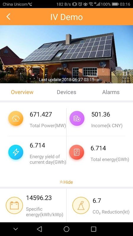 2. Monitors KPI data and alarm information of the PV system, PV plant, and devices in real time.