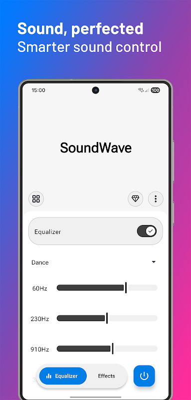 ✦ Memungkinkan penyesuaian efek bass, treble, virtualizer, dan reverb.