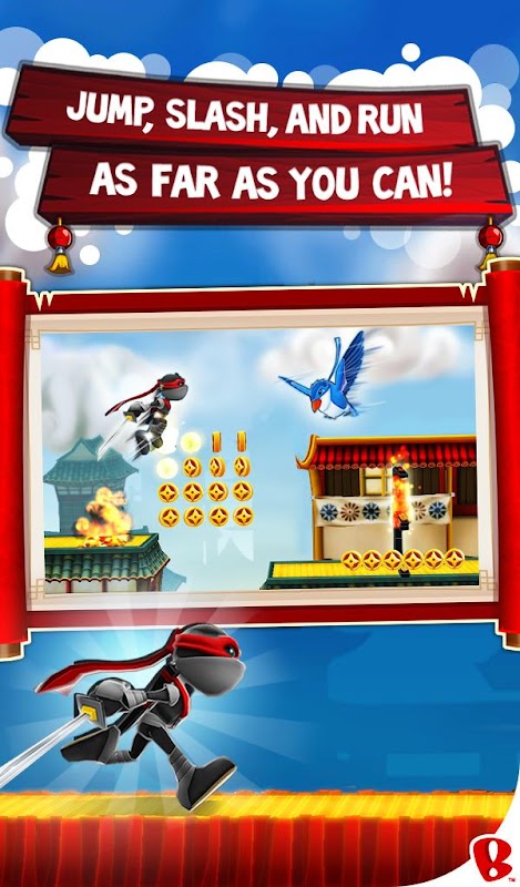 NinJump Rooftops is a fast-paced game where your goal is to jump between rooftops, avoid obstacles, defeat enemies, and stay alive as long as you can. Jump, slash & run for your life! Grab coins & jade crystals along the way to upgrade your ninja abilities. Hit 3 matching enemies in a row for an epic power-up boost. Fly through the air on a zip wire. Dodge throwing stars, deadly fire pits & evil squirrels. Experience full-on pandemonium riding on the back of a skyscraper-sized panda. Master the mighty ninja "double jump", where you jump, then jump again in mid-air, defying all laws of physics & logic. Whatever you do, just don't fall off the roof or let the baddies get you. Stay alive!