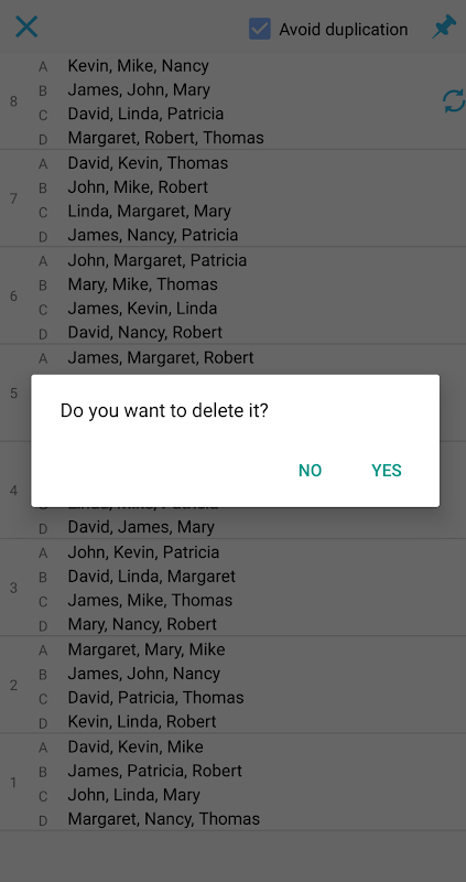 Jika ada nama atau grup yang ingin Anda hapus, Anda dapat menghapusnya dengan menekan lama kolom yang sesuai.
