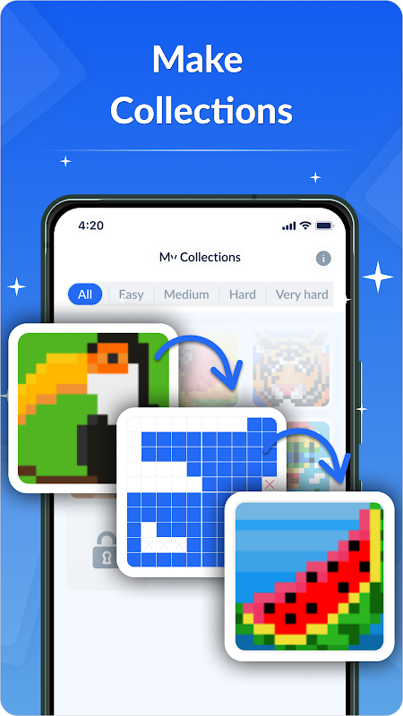 Setiap level berisi gambar terselubung yang dibuat dengan cermat oleh seniman kami. Animasi berkualitas tinggi ini membuat game ini nyaman bagi pemain dari semua tingkat keahlian, dari pemula hingga master nonogram sejati.