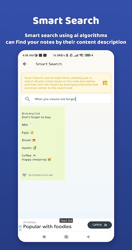 - Pencarian cepat dan bervariasi: Aplikasi ini menyediakan fitur pencarian cepat di catatan, selain fitur pencarian pintar, yang menggunakan algoritma kecerdasan buatan untuk mencari catatan berdasarkan deskripsi catatan.