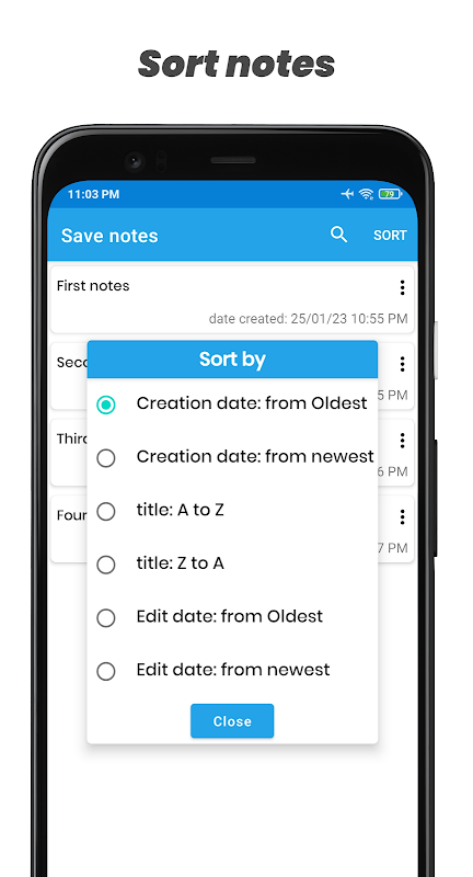 - Atur catatan sesuai dengan tanggal dibuat, tanggal terakhir diedit dan judul