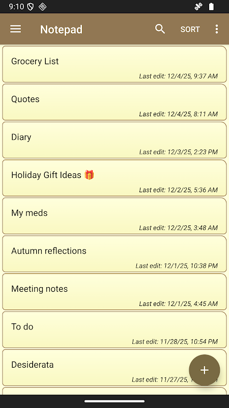 Notepad adalah aplikasi pencatatan kecil dan cepat untuk membuat catatan, memo, atau sembarang konten teks biasa. Fitur: