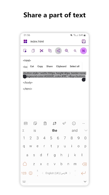 Ability to share all or part of the text