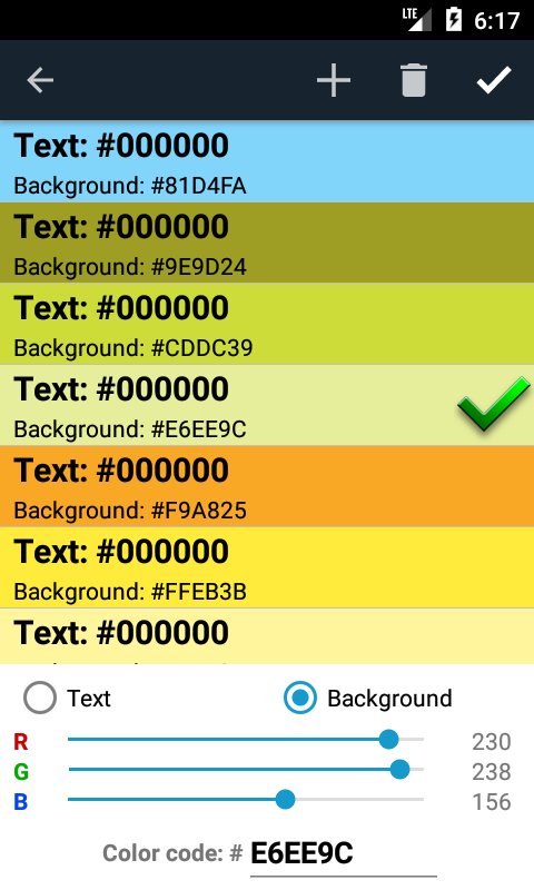 Ditambahkan "Widget", memungkinkan Anda untuk link ke catatan dari database. Untuk widget, Anda dapat menyesuaikan warna teks dan latar belakang, ukuran font. Dari layar awal, Anda dapat dengan cepat membuka catatan yang dipilih dengan menggunakan widget.