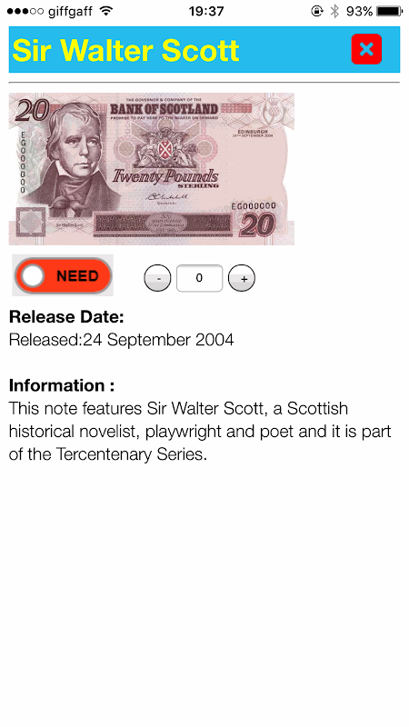 Catatan mengumpulkan aplikasi bagi mereka yang tertarik dalam denominasi catatan UK. Setiap catatan memiliki gambar rinci, beberapa teks informatif, dan kemampuan untuk menandai sebagai dikumpulkan.