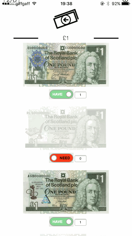 UK Catatan koleksi App untuk £ 1, £ 5, £ 10, £ 50 dan £ 100 catatan.