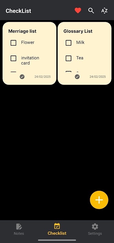 Bilah navigasi bawah yang jelas memisahkan tiga area utama: Catatan, Daftar Periksa, dan Pengaturan.