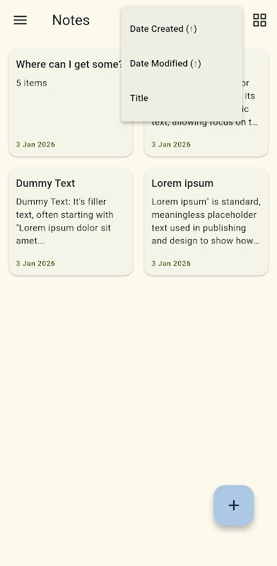 Buat dan kelola catatan teks atau daftar periksa dengan mudah. Atur catatan Anda dengan label, arsipkan atau pulihkan, cari di semua catatan, dan nikmati antarmuka yang bersih dan ramah pengguna dengan tema terang dan gelap. Sederhana, cepat, dan sempurna untuk pencatatan sehari-hari.