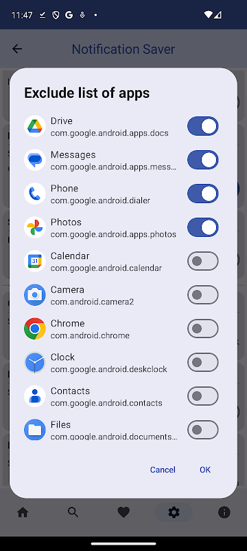 - Daftar aplikasi yang akan dikecualikan: Pilih aplikasi yang notifikasinya tidak ingin Anda simpan.