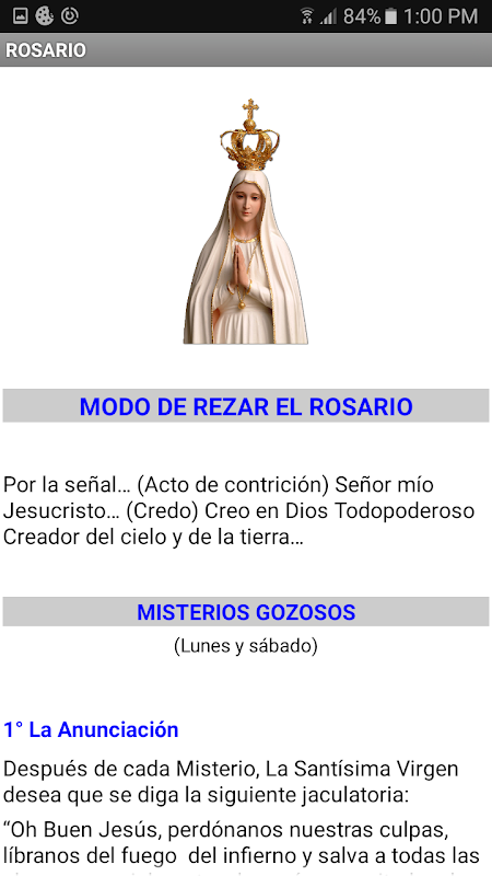 Aplikasi ini memiliki novena untuk Perawan Fatima dan doa
