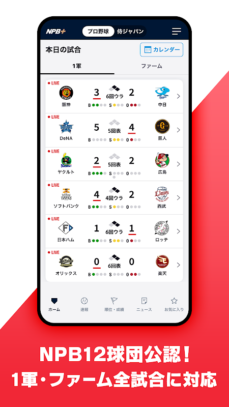 Dikembangkan oleh NPB Enterprises, aplikasi ini menyediakan data skor bisbol profesional berlisensi resmi untuk semua 12 tim NPB.