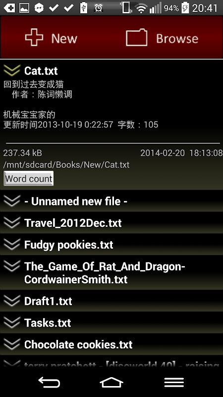 - Introduced dedicated menu buttons in the toolbar and file browser. Long pressing "New" or "Browse" will also trigger a menu popup.