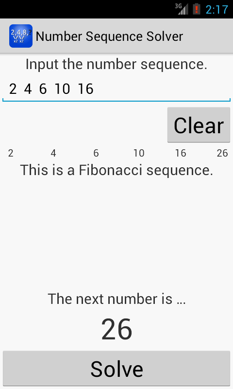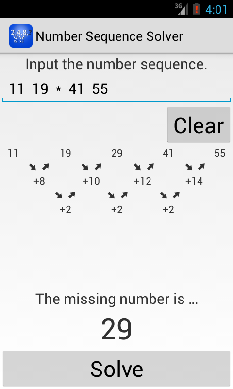 Sequence Number Solver mengambil rasa sakit dari pertanyaan-pertanyaan ini dengan memberikan jawaban serta pola bahwa urutan berikut. Cukup ketik dalam angka dan Sequence Number Solver akan langsung menemukan nomor berikutnya untuk Anda.