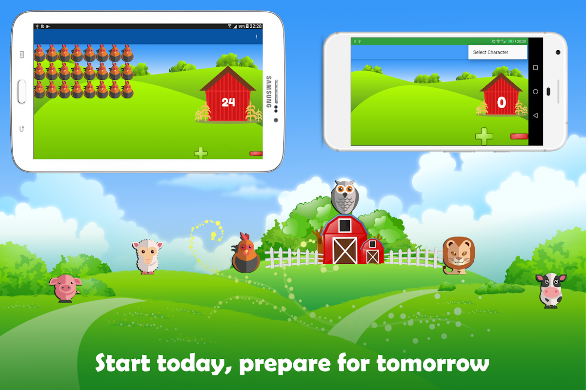 The current icon that the kids use to learn counting is also visible on the barn and by clicking on the animal icon you can select any other available animal icon to help your kids learn better.