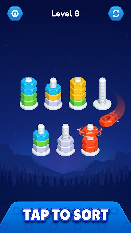 Bersiaplah untuk menyelami dunia Nut Sort yang penuh warna dan memuaskan – permainan menyortir warna yang paling menenangkan dan membuat ketagihan yang telah Anda nantikan!
