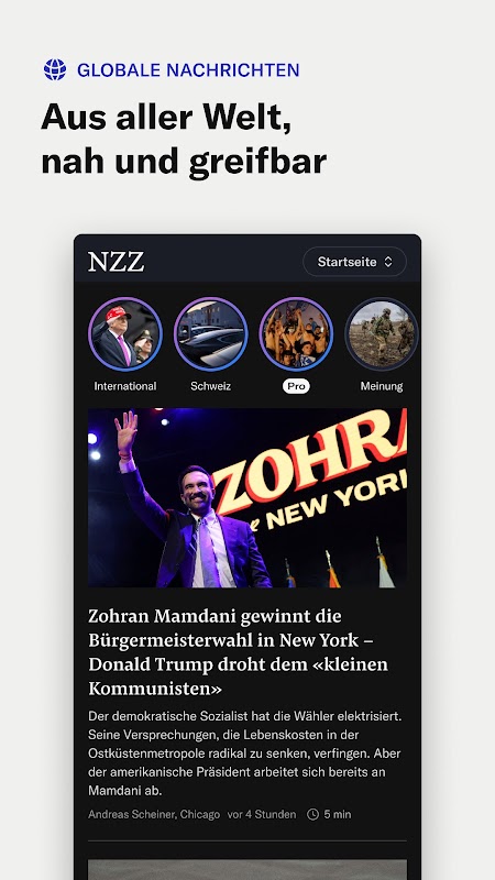 NZZ menawarkan berita terkini dari Swiss serta laporan internasional langsung: Dengan lebih dari 40 koresponden di seluruh dunia, surat kabar ini memiliki salah satu jaringan jurnalistik terbesar di dunia berbahasa Jerman.